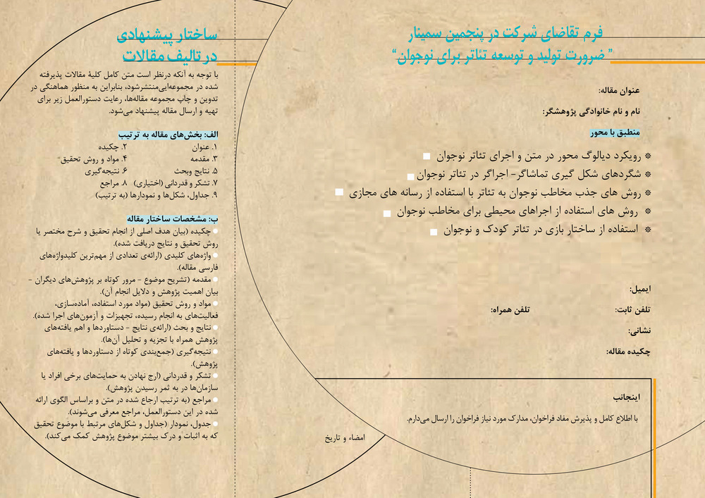 فرم تقاضای شرکت در پنجمین سمینار تخصصی تئاتر کودک و نوجوان