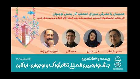 دبیرخانه بیست و هشتمین جشنواره بین‌المللی تئاتر کودک و نوجوان اردکان، شورای انتخاب آثار بخش نوجوان و آثار منتخب این بخش از جشنواره را معرفی کرد.